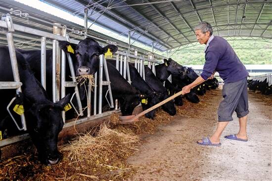 ■采写:新快报记者 严蓉 潘芝珍 ■图片:新快报记者 王飞 晨风拂过山冈,掩身于其中的玉龙坝镇五组牛场,在鸡鸣声中醒来。 “牛儿吃得好,才能长得快。”贫困户周大福穿着长雨靴蹲在棚外的空地上,将面前干草、青贮娴熟地投入饲料搅拌机,待混合均匀,起身搓搓手,打开车门坐进驾驶室,将投喂车开到棚口交给一位年轻人,棚内几百头大黑牛早就挤在槽口,“哞哞”叫着,紧盯投料车等待开餐。 在贵州省纳雍县,与五组牛场类似的规模养牛场共有26个,均由恒大集团援建。从去年开始,针对养牛场面临的现实困难,经广黔双方调研协作,广州市天河区投入帮扶资金进行产业升级改造,通过加建环保设施及购入饲养设备改变周边环境,提升喂养效率。 产业兴旺是巩固脱贫成果,实现乡村振兴的首要条件。决战决胜脱贫攻坚关键之年,赋能纳雍扶贫产业使其稳固长效机制,是天河区委、区政府携手纳雍共奔小康的工作重点。据了解,2016年以来,广州市与天河区分批投入资金,补短板、促发展,助推包括养牛场改造在内的产业及配套基础设施建设、异地扶贫搬迁安置点卫生服务中心等70个协作项目日趋完善。 改建养牛场 效益效率同提升 玉龙坝镇位于纳雍县城以东20多公里处,从县城出发到五组牛场,九曲十八弯的山道,每一处转弯,田松都了然于胸。“我走过了无数遍,全县26个养牛场有2个建在玉龙坝镇。”对26个养牛场内的安格斯牛存栏量,他如数家珍:“玉龙坝的养牛场有560头基础母牛,382头小牛,最小的牛宝宝,刚出生一个月。” 田松是纳雍县鸽子花农业公司董事长,公司负责运营全县安格斯牛养殖产业,以“公司+合作社+农户”模式,保证贫困户每年保底分红,并提供工作岗位优选贫困户入场务工。 60岁的周大福是五组牛场的老员工,已经在养牛场工作三年多。朝夕相处,尽管棚内的大黑牛不言不语,“牛倌”周大福却对它们有了深厚的感情,“这是咱们贫困户的致富牛,我在牛场上班,除了每月三四千元工资,还能领到固定分红。” 周大福家里有五口人,很不幸的是,前些年小儿子患上肿瘤,每两年就要做一次手术,离婚后还有一个小孙子需要他们养活,没来养牛场工作前,周大福四处打零工养家,生活十分不稳定。 2017年初,村里的干部找到周大福,介绍他到养牛场做饲养员,“这是技术活儿,配料、喂水甚至清牛粪,都有学问。”能成为产业工人,周大福颇感自豪,他说,以前牛棚没这么干净,下雨后清扫蛮吃力。去年开始,牛场的设备升级了,喂牛、打扫牛场等工作更轻松,已届花甲之年的他对手头的活儿都能胜任。 “没有雨水分离管道前,我们被环保部门罚过款,数额不小。”田松指着牛棚上的凹槽细说升级改造,“广州天河区投入资金,增建环保设施,还购买投喂车等设备,促进养殖场效益效率同步提升。说话间,年轻人开着投喂车驶过,车尾轰隆隆腾起一条“草龙”,准确、均匀地落入食槽。几百头安格斯牛挤在栏前,从喂养口伸出大脑袋,“吧嗒吧嗒”地享受美餐。 “以前靠人投料,用量没有机器精准,也耽误时间。有了投喂车,我的工作轻松了,工资还照旧。”周大福站在栏外观察安格斯牛的进食状况,看到蛮牛抢食,他会抬手摁住牛颈枷“勒令”其缓食,“这也是刚装好的设备,没有牛颈枷,要固定一只1200斤的牛,太困难了。”体贴入微的细节改造,不仅提高了饲养员的工作效率,也改变了牛场和周边的环境。 延长产业链 贫困户多渠道增收 “我吃住都在牛场,也没有什么额外花销,每月的工资全拿回家,家人的生活过得比以前好很多。”周大福笑着说,多亏有这样一份好工作。 田松告诉记者,包括周大福,仅玉龙坝镇两个养牛场内,就有3户贫困户稳定就业,活儿多的时候,还要不时请散工帮手,给周边农户和贫困户提供更多务工机会。而在纳雍26个养牛场内,依靠一人就业、全家脱贫的“周大福”们有数十户,这些新型“牛倌儿”有技术,懂市场,都是脱贫致富的“好把式”。 养牛的贫困户不简单,棚内的安格斯牛也非等闲。 玉龙坝养牛场场长谭江文乐滋滋地介绍道,安格斯牛品种好,再加上专业的喂养和玉龙坝镇没有污染的高山环境,还未开始对外销售,订单就已经排得满满。“玉龙坝的牛场主要做育种,牛崽里的母牛长大专职做‘牛妈’,不外卖;小公牛要养大到1000斤左右,再对外出售。”他说,公司有统一喂养标准,母牛一年半左右可以育种,公牛二年左右可以长成。 “不愁卖就有效益,有效益就有分红。”田松接口道,今年3月,他跟随纳雍扶贫工作队去广州参观学习,在天河区一家肉食品加工企业掌握了要求更高的饲养标准,并与该企业达成合作意向,“只要我们能养好,纳雍的安格斯牛,天河企业包销!”他笑着说,能把最好的安格斯牛肉卖到广州,从内心讲,也是全体纳雍养牛人对广州天河的感恩回报。 除了稳定的分红和土地流转费两笔收入,周边农户还可以通过种青贮增收。田松算了一笔账,同样一亩地,种玉米和种青贮,收入差异是1200元,“不管是贫困户还是农户,拿出几亩玉米地改种青贮、高粱,每年又能多几千元收入。” 周大福去年就将家里的几亩田都种上了青贮,他说,收入增多,自然少了诸多烦恼。轮休日回到家里,他与儿子不再愁容相对,父子俩促膝而谈,“我们计划攒些钱,一家三代人都去广州看看,在深山住了半辈子,我想带小娃儿开开眼界,看看大海!” 打造葡萄长廊 让荒山变宝地