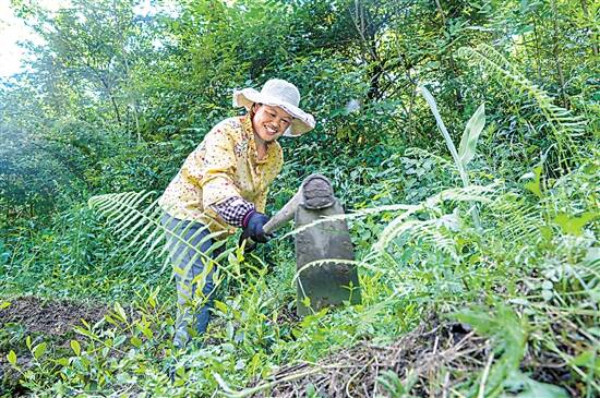 ▼贫困户尹廷蓉在茶园工作,一天能有100元左右的收入。 |