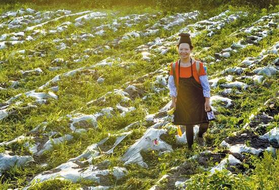 ▶贫困户李修平,她干活非常勤劳,因家庭特别困难,基地负责人也非常照顾她。 |