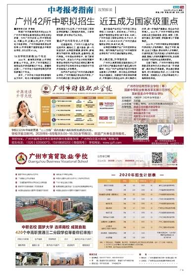■新快报记者 罗清峣 根据广州市教育局发布的《2020年广州市中等职业教育拟招生学校名单》来看,今年广州市共有42所中职拟招生,市属22所,区属20所。其中,广州市电子信息学校、广州市旅游商务