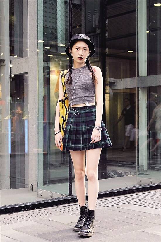 自带学院气息的格纹高腰A字裙在这波甜辣Style中风头很盛,如果搭配渔夫帽、腰链、马丁靴等单品,一秒变酷辣街头风,时髦度更高。 |