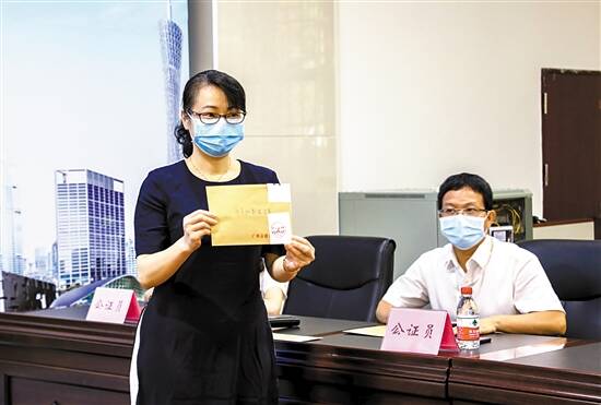 ■7月2日上午,2020年越秀区民办初中招生电脑摇号现场。新快报记者 夏世焱/摄 |