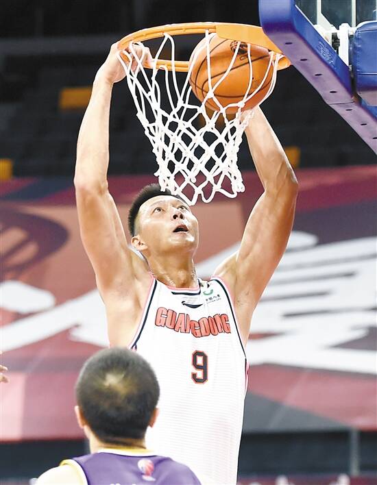 ■广东东莞银行队球员易建联(上)在比赛中扣篮。 |