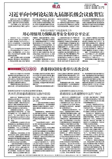 香港国安法 热点透视 据新华社电 根据《中华人民共和国香港特别行政区维护国家安全法》第十二条,香港特别行政区日前设立维护国家安全委员会。特区国安委6日举行首次会议,全体成员出席,由中央人民政府
