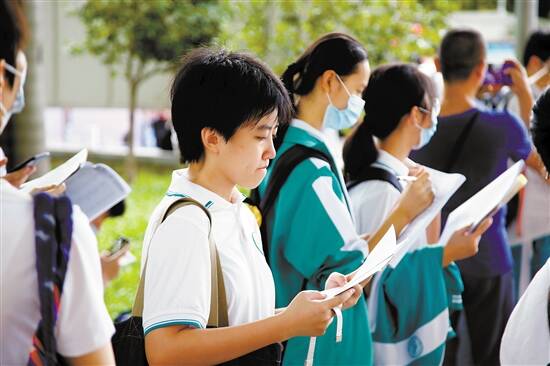 高考首日,语文、数学考试落幕。上午,全国Ⅰ卷作文题以历史典故“管鲍之交”入了题,让不少考生大呼:出乎意料;但所幸作文材料熟悉、角度多样,大部分考生表示下笔并不难。下午数学的“埃及金字塔”比例计算,则唤醒了考生们对去年“断臂维纳斯”考题的记忆,然而文理生对此却感受不同。新快报记者兵分多路,在多个考点采访考生,多数考生对语文表示“淡定”,而数学文理生却各有各的“难”。 语文 高考作文题未提到疫情 文本分析题涉及新基建 今年的作文题让不少考生感到出乎意料。来自广州市第一一三中学的钟同学告诉记者,无论是同学或是老师,都觉得这次作文题会涉及到疫情,此前备考时也就疫情相关方面的时事热点进行系统准备,但最后没想到是一篇历史材料。 记者在随机采访中,发现多数考生都选择了以“齐桓公”为主角,以重用人才、 任人唯贤为落脚点去阐述。广州市铁一中学的刘同学表示,自己平时作文训练的方向偏时政领域,这次出了一个思辨类的题目,选取了较好发挥的“齐桓公”,围绕“度人”的关键词,用了格斗运动员张伟丽的例子,把自己的思考写出来。 而广州市第七中学的姚同学说,自己对“管鲍之交”的故事不熟悉,因此选择从“齐桓公”的角度,结合疫情下中国的应对之策等时事开展论述。来自培正中学的林同学则表示,自己写的是齐桓公的“谋略取天下,关爱凝人心”。 令人关注的是,此次语文作文题虽未涉及疫情,但前面的综合文本分析题却与新基建“联系”在一起。据考生反映,该题目表示,因为疫情,经济受到很大影响,结合文本,阐述新基建与经济之间的关系。不少考生表示,备考时均对“疫情”“新基建”“5G”等时事热词进行准备,因此回答起来并不难。 此外,部分考生透露,今年语文考试有些难度,还体现在阅读理解上。高四复读生唐同学告诉记者,阅读理解题中一篇关于滑雪的文章,要求用冰山理论来分析情节安排和效果,但是立意不大清晰,答起来心里没底。天河中学的一名理科生黄同学也表示,阅读理解选取的是海明威的《越野滑雪》,“有些没读懂,而且考查的点也比较多,没写全。 数学 理科生直呼计算量大 时间不够 文科生被“算金字塔比例”难住了 高考数学向来是不少考生的“绊脚石”,今年也不出意外,几家欢喜几家愁。有考生认为考题与2019年相似,有人认为90%的考点内容平时复习均有涉及。 在天河中学的考点现场,第一位出考场的学生是一名复读生,去年考的是理科数学,今年是文科数学。“今年感觉有的题很新,去年是‘断臂维纳斯’,今年是‘埃及金字塔’。”劳同学说,他知道自己肯定算不出,也就不花时间在这道题上了,其他题型没有什么变化。 记者在采访中了解到,“埃及金字塔”均是文理科数学的选择题第三题,然而文理生的普遍反映却大不相同。其中,大部分理科生都表示“还好”,来自广州市第十六中学的理科生曾同学便认为,“金字塔”虽然题型比较新,但是自己平时练过相应的解题办法,因此并不难。 而不少文科生却对这一题印象深刻。华师附中的文科生吴同学表示,题目没给任何数据,只给了关系,即使设字母,也比较难算出来。 理科生逃过了“金字塔”,却陷入了大计算量中,花费了不少时间,以至于直呼“时间不够用”。来自华师附中的理科生杨同学告诉记者,自己在概率和数列这两道大题上花了不少时间计算,其中数列的一道小问便花了十多分钟。还有理科考生说:“大题写到哪算哪,计算量比较大,有些没有算出结果。” 文科考生除了选择题“金字塔”外,后面的大题也不容易。吴同学举例称,像立体几何,以往多考的是四面体,这次考的却是圆锥体,并要求算圆锥体里面三棱锥的体积。而有的考生则坦言,自己在答题过程中“不会就放”,大概“放”了五六道题,最终也没有时间回过头去仔细做。 作文解析 ●华南师范大学文学院二级教授、博士生导师张玉金 作文题目要求明确不易偏题 这是一个材料作文考题,考题创设了相关写作情景——班级读书会。华南师范大学文学院二级教授张玉金分析,这规定了写作者身份和写作对象,要求谈对齐桓公、管仲、鲍叔三个人物哪个感受最深,文体应是发言稿。 “在这三个历史人物中,选择哪一个人物来写都是可以的,应具体说出为什么对某一人物感触最深。”张玉金举例称,比如齐桓公志向高远、心胸宽阔、唯才是用,所以能成就霸业;鲍叔不计私利、审时度势、谦虚礼让,对齐桓公任用管仲起到了重要作用;管仲才能出众、恪尽职守、功勋卓著,有力辅佐齐桓公成就霸业。“他们的品行、格局、人格境界、为国为民的情怀,不但让他们在历史上曾经发挥重要作用,展现出独特人格魅力和思想价值,在今天仍有现实意义,值得尊重和学习,能够让我们从历史人物中获得启发。” 此外,张玉金表示,今年这个考题,所创设情境贴近考生实际,作文材料考生熟悉,有话可说;要求明确,不易偏题。“相信我们的考生可以写出符合要求的思想与表达俱佳的高考作文。” ●华南师范大学附属中学高三级语文高级教师卢福东 考查学生思维的辩证性独创性 “考生可以讲齐桓公不计前嫌、知人善用,也可以讲鲍叔举贤荐能、甘居人下,还可以讲管仲尽职尽责、为人忠诚,哪个角度对于考生而言,都是有话可说的。”在华南师范大学附属中学高三级语文高级