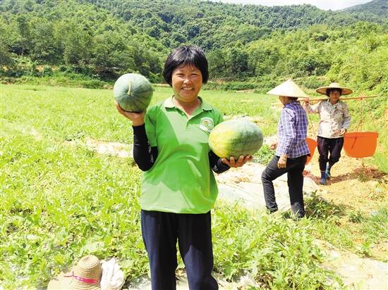 ■谭脉西瓜丰收,村民们到基地务工,增加收入。 |