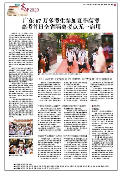 新快报讯 7月7日,延期一个月的2020年全国高考拉开帷幕,全国1000多万考生怀抱希望,走进考场,追寻梦想。在广东的479个考点、23452个考场,也迎来了60多万考生。据省教育考试院介绍,高考