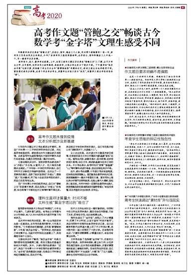 高考2020 2020年7月8日 星期三 责编:陈玉婷 美编:陈柏林 校对:任倩妮