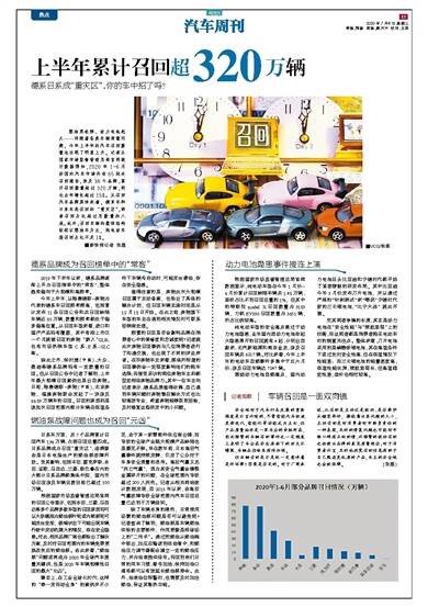燃油泵故障、动力电池起火……伴随着各类车辆质量问题,今年上半年的汽车召回数量也出现了明显上升。记者从国家市场监督管理总局官网统计数据得知,2020年1-6月份国内汽车市场共有65批次召回通告