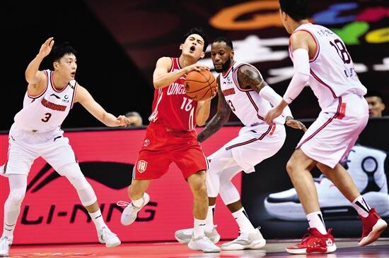 ■面对青岛队,广东宏远仅仅赢了三分。 新华社发 |