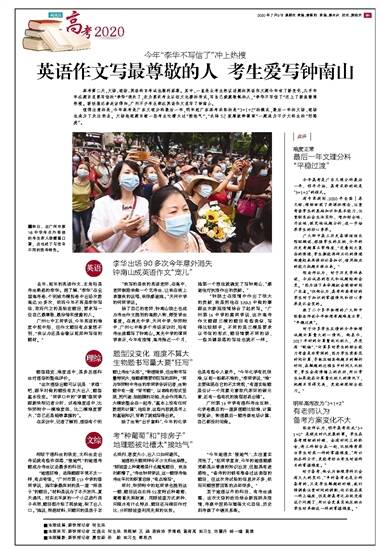 高考2020 2020年7月9日 星期四 责编:唐佩阳 美编:廖木兴 校对:楚晓庆 ■本版统筹:新快报记者 何生廷 ■本版采写:新快报记者 沈逸云 何生廷 吴晓娴 王 娟 麦