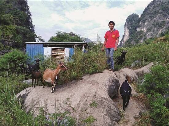 ■陈聚升在扶贫工作队的帮扶下发展山羊养殖业。通讯员供图 |