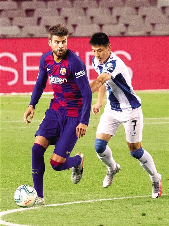 ■西班牙人队球员武磊(右)替补上场,表现的机会不多。新华社发 |