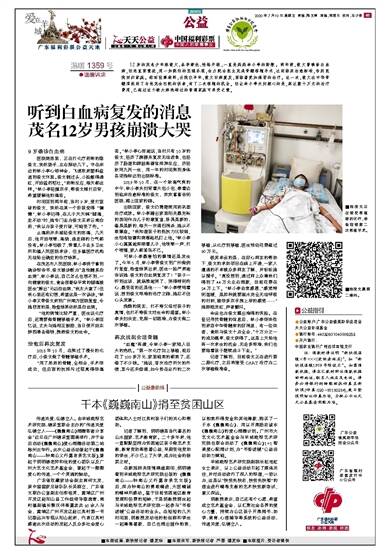 听到白血病复发的消息 茂名12岁男孩崩溃大哭