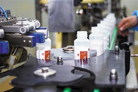 ■番禺平安堂凉茶工厂生产线上的盒马“日日鲜”凉茶。 |