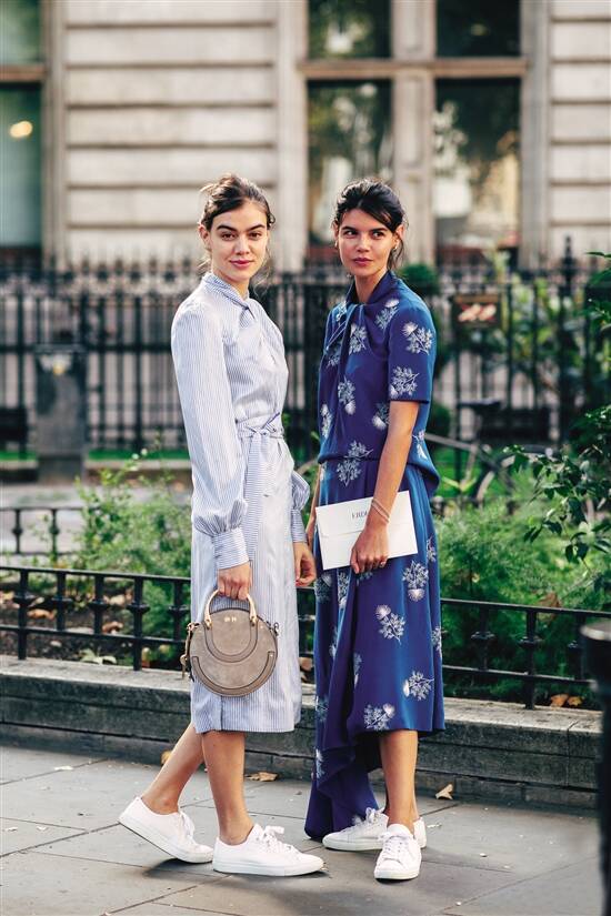 ▲不同款连衣裙同样搭配小白鞋,并以同样的发型打造出相似的头尾呼应感,是很值得借鉴的日常闺密装打造方法。 |