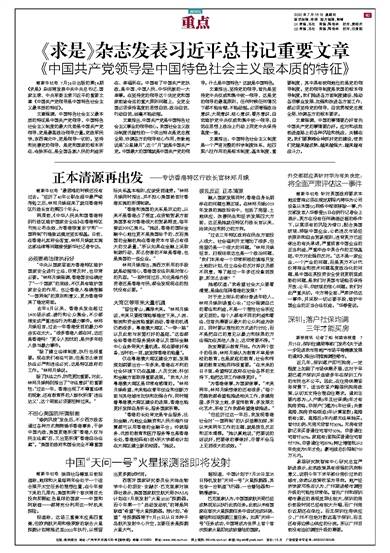 据新华社电 7月16日出版的第14期《求是》杂志将发表中共中央总书记、国家主席、中央军委主席习近平的重要文章《中国共产党领导是中国特色社会主义最本质的特征》。 文章强调,中国特色社会主义最本质