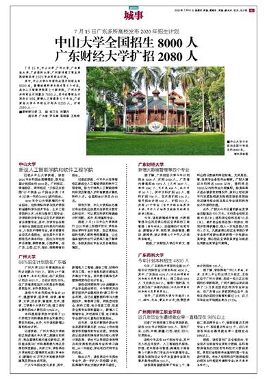 7月15日,中山大学、广州大学、广东财经大学、广东药科大学、广州南洋理工职业学院纷纷发布2020年本科招生计划。 其中,中山大学今年面向全国计划招生约8000名,新增遥感科学与技术等4个专业,