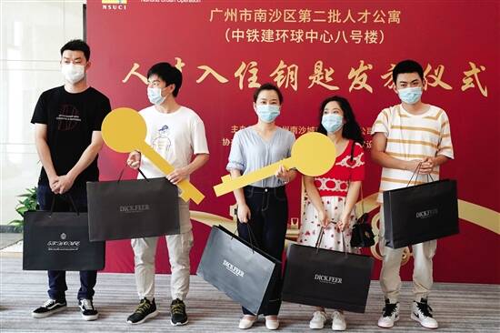 ■7月15日,广州南沙区举行第二批人才公寓入住钥匙发放仪式,5名骨干及储备人才拿到钥匙。受访者供图 |