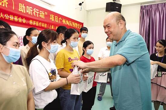 简单的仪式,无声地交流,台下获赠助听器的孩子们以热烈的掌声,表达内心的欣喜。7月15日,2020年“集善工程—(奥智·悠济)助听行动”在广州市天韵社会工作服务中心举办了广州地区捐赠仪式,烘焙师张旭标和他的11名听障伙伴,获得20多年生命中第一台助听器。他用手语描绘将面临的有声世界:“以后不用眼睛盯机器,听到‘滴滴’声就知道蛋糕烤好了。” “集善工程——助听行动”是由中国残疾人福利基金会发起,联合广东省残疾人公益基金会共同开展的项目,旨在从建设基层听障残疾预防入手,提升基层听力检测水平,更好地为广大基层听障人士提供听力检测、验配等服务。省残疾人公益基金会理事长麦思明在捐赠仪式上说,“集善工程—(奥智·悠济)助听行动”今年捐向广东省的300台助听器品质很高,将由公益基金会转捐至湛江、梅州和广州,每市各100台。广州部分,将捐助给有听力障碍的务工人员、中老年人等听障人士。 张旭标与他的伙伴们来自“无声的cake”面包店,这家店近七成的收银员、西点师、咖啡师等员工是听障人士。去年,有几名员工幸运获得集善工程捐赠的助听器,大家很羡慕。今年,该项目再捐12台助听器,帮助这些20出头的年轻人告别无声世界。 据了解,广州地区百台助听器的验配及赠送工作,将由广州市天韵社会工作服务中心完成。该中心理事长邹雷承诺,将在基金会的指导和支持下全力以赴,将服务广大基层听障人士这一公益项目落到实处。 “听到他叫‘爸爸’,我的眼泪一下子流出来……”杨先生是一名单身爸爸,代表上年度“集善工程——助听行动”受惠者参加仪式。他说,5岁儿子在佩戴助听器前后判若两人,“以前很自卑,有了助听器并进行康复训练之后,他现在能主动和周围人交流,生活和性格都发生了正向变化”。 ■本版统筹:新快报记者 潘芝珍 ■本版采写:新快报记者 李斯璐 潘芝珍 ■本版图片:受访者提供