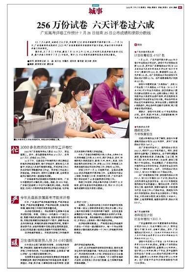 63.7万人参考,试卷近256万份,共选聘3230多名评卷教师开展评卷工作……7月16日,广东省教育考试院举行2020年广东省普通高考评卷媒体开放日活动,详细介绍今年高考评卷工作的情况。 据介