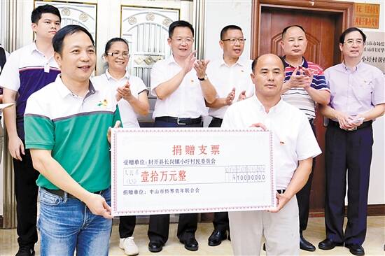 ■中山市侨界青年联合会再捐10万元到“小圩村教育扶贫奖助学金”。 |
