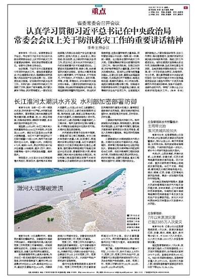 长江淮河太湖洪水齐发 水利部加密部署防御