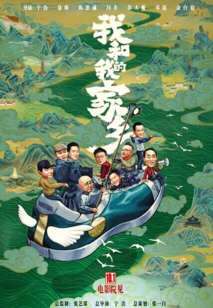 近日,电影《我和我的家乡》曝光定档海报,正式宣布将于国庆上映。去年国庆档上映的献礼片《我和我的祖国》曾振奋感动了无数观众,最终斩获31.7亿元票房,登中国影史国庆档票房冠军、2019年度票房第四名,并跻身中国电影票房总榜第八名。优异的票房与口碑表现也令同系列接棒力作《我和我的家乡》备受关注。作为《我和我的祖国》的姊妹篇,《我和我的家乡》延续集体创作的方式,由张艺谋担当总监制,宁浩担任总导演,张一白担任总策划,宁浩、徐峥、陈思诚、闫非&彭大魔、邓超&俞白眉分别执导五个故事。 受到疫情影响,《我的我的家乡》剧组面临着严格的人员数量管控和封闭式管理,有时连摄影师也无法进入现场,只能在场外“遥控”拍摄。涉及到医院的场景无法使用,剧组只好找摄影棚连夜临时搭建场景。拍摄时正值暑期,为了防疫剧组成员都要佩戴口罩,长时间忍受高温。即便如此,九位导演和所有工作人员也顶住压力,在坚决防控疫情的同时积极复工,科学拍摄。 “家乡”延用“祖国”的单元片模式,也将以细腻的手法唤起全民心底最深处的情感共鸣。导演阵容堪称“中国喜剧梦之队”,张艺谋、宁浩、张一白、徐峥、陈思诚、闫非、彭大魔、邓超、俞白眉九大导演汇聚了华语影坛的中坚力量。一众导演过往累计撬动近400亿元票房市场,获奖超140次,拥有超强的群众基础,作品有口皆碑。 在最新释出的定档海报中,九位导演以手绘形象亮相,呈现喜剧欢乐气场,也展现出不同寻常的想象力。他们共同乘坐着一架以鞋子为雏形的“飞艇”,向着远方前进,有的手持摄影机,有的高举打光灯,剧本不离手,拍摄不停歇,所有导演同心协力创造光影故事,电影人的使命感与责任感呼之欲出。画面里祖国大好河山一览无余,祥云环绕,山清水秀,长城、天坛、布达拉宫、三潭印月等名胜古迹隐藏其中,暗示了电影拍摄地贯穿祖国东西南北中五地。九位导演踏步而来,和围绕在身边的小鸟一样,向着家的方向前进,暗喻着电影主题。
