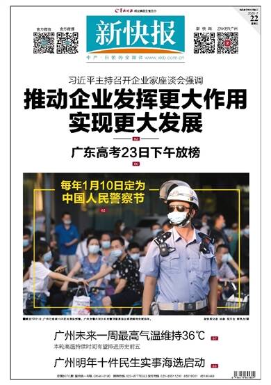 习近平主持召开企业家座谈会强调 推动企业发挥更大作用 实现更大发展 02 广东高考23日下午放榜 06 每年1月10日定为 中国人民警察节 02