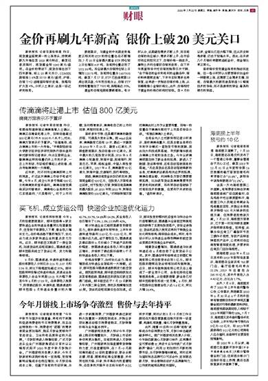 新快报讯 记者范昊怡报道 昨日,现货黄金延续周一的上涨势头,持续刷新九年高位至1823美元附近,截至记者发稿时,现货黄金报1840美元/盎司。在金价的带动下,现货白银也创下四年新高,站上20美元关