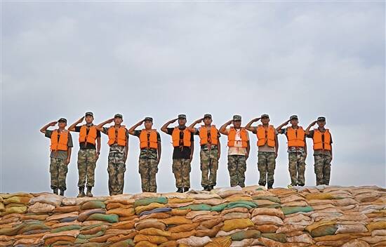 ■退伍老兵在江西鄱阳县昌江圩堤上。新华社供图 |