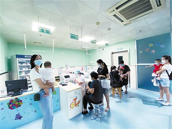 ■三元里街社区卫生服务中心二楼预防接种门诊,不少家长带着孩子来打疫苗。 |