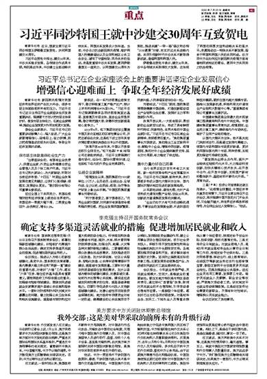 习近平同沙特国王就中沙建交30周年互致贺电