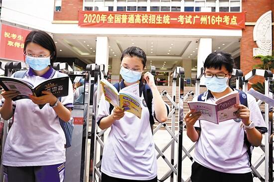 ■今年高考首日,进场前考生还在场外抓紧时间复习。如今,填报志愿又成为考生及家长要面临的一大考验。 新快报记者 夏世焱/摄 |
