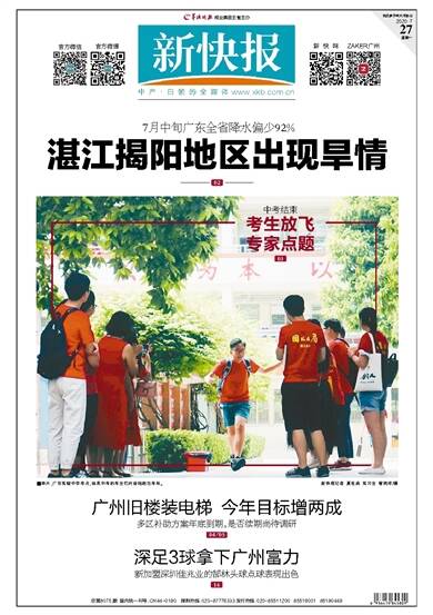 7月中旬广东全省降水偏少92% 湛江揭阳地区出现旱情 02 中考结束 考生放飞 专家点题 03 广州旧楼装电梯 今年目标增两成 多区补助方案年底到期,是否续