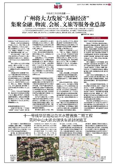 特别报道 因广州地铁十一号线华景路站自来水管置换二期施工需要,广州地铁集团有限公司将于2020年7月29日22时-2020年9月1日零时对中山大道北侧(天府路-华景路)快车道进行封闭施工。