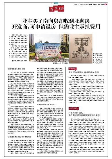 业主买了南向房却收到北向房 开发商:可申请退房 但需业主承担费用