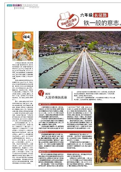 跟着语文课本去旅行 六年级语文课本第二单元即鲜明点出主题“重温革命岁月,把历史的声音留在心里”,跟着开篇就是毛泽东作于1935年10月的《七律·长征》:红军不怕远征难,万水千山只等闲。五岭逶迤