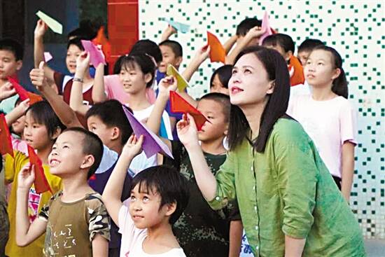 ■孩子们把一个个纸飞机推向天空,就像放飞自己的梦想。 |