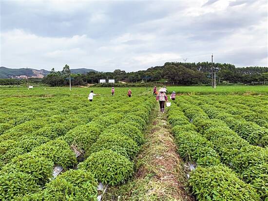 ■饶平县潮刘村,村民给甜溪黄草施肥。 |