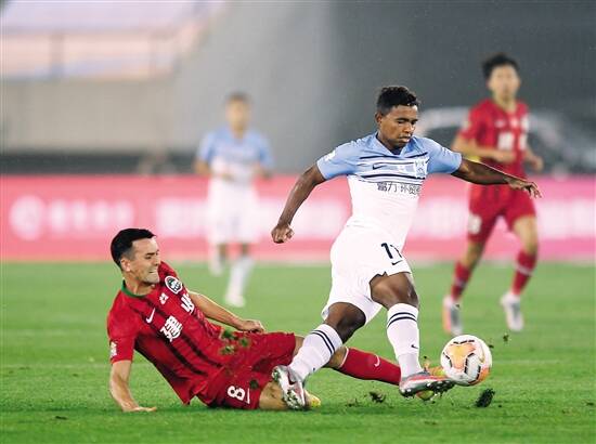 ■广州富力队球员雷纳迪尼奥在比赛中带球进攻。 新华社发 |