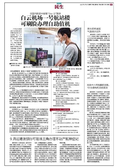 广州白云机场成为全国机场首家提供旅客出行全流程“One ID”服务的机场!8月5日起,白云机场在一号航站楼(T1)推出国内航班“One ID”服务,旅客可刷脸办理自助值机、自助托运等业务,通过二代