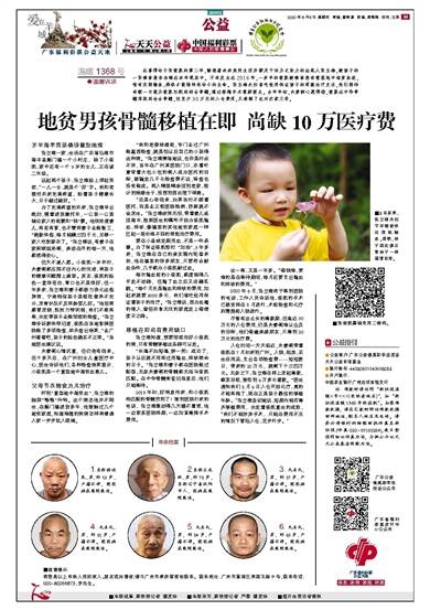 地贫男孩骨髓移植在即 尚缺10万医疗费