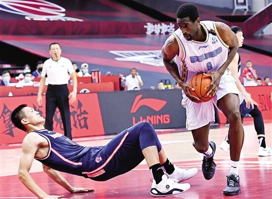 ■北京首钢队球员尤度(右)在比赛中突破。 新华社发 |