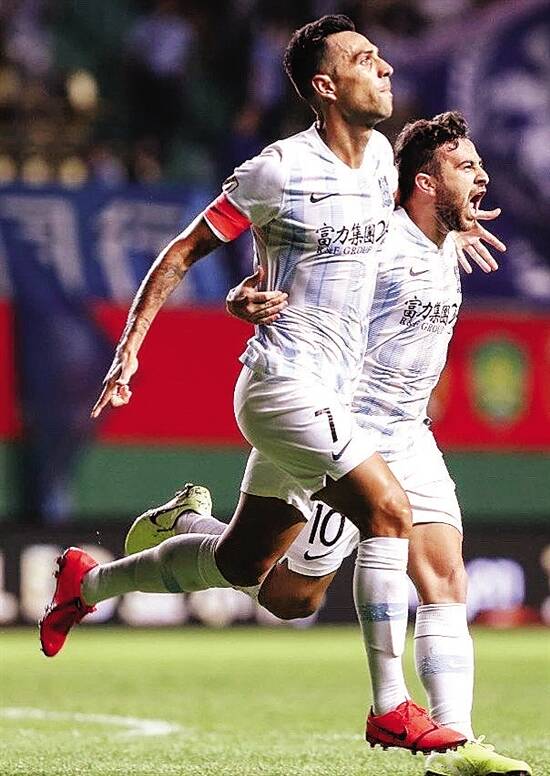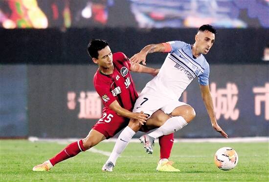 ■广州富力队球员扎哈维(右)在比赛中拼抢。新华社发 |