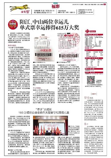 阳江、中山两位幸运儿 单式票幸运捧得615万大奖
