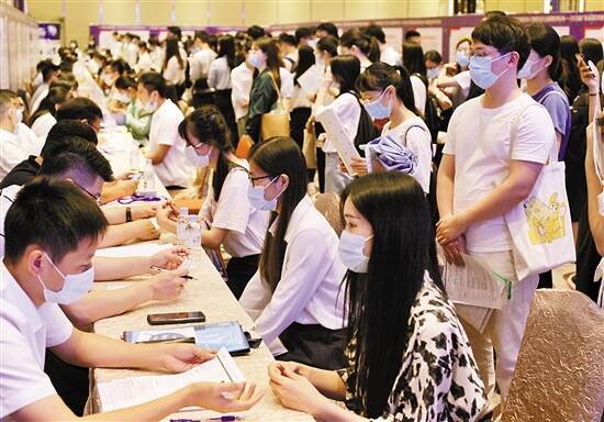 8月12日,作为8月份广东省“就业攻坚专项行动”首场线下招聘会,2020届高校毕业生就业攻坚国有企业专场洽谈会在广州拉开帷幕。现场58家知名国企携1200多个优质岗位揽才,吸引超过1300名求职者进场洽谈。新快报记者采访了解到,有国企较去年增加了50%的岗位招聘,促就业的同时亦为企业储备人才。而不少毕业生求职心理也作出了调整,不求高薪、不限地点。据悉,8月份全省各地将举办不少于200场现场招聘会,其中省本级共4场。 ■新快报记者 沈逸云 通讯员 粤仁宣 10个争1个 招聘会上近八成求职者为本科学历 据介绍,由省人社厅、省国资委主办的2020届高校毕业生就业攻坚国有企业专场洽谈会,是8月份广东省“就业攻坚专项行动”首场线下招聘会。本次洽谈会吸引了中国二冶、广东交通集团、粤海集团等58家知名央企、省属重点国企,组成了“豪华引才团”,提供211个职位共计1273个优质岗位,需求专业涵盖机械工程、通信、计算机、管理类等。 为了提高对接成功率,现场招聘会举办前,省人才服务局在广东省急需紧缺人才供求信息平台开通了网络招聘专场,求职者在平台先行匹配,再到活动现场有针对性地洽谈,企业与人才对接成功后即可立刻签约。而为了满足防疫工作的需要,现场采取了网络扫码预约进入活动现场,分时段进入招聘会场“揾工”。 记者在现场看到,大部分企业提供的岗位普遍待遇优厚,如广东省建筑工程集团有限公司多个岗位月薪直逼1.5万元;而广东风华高新科技股份有限公司直接在“公司福利”中写明“拒绝‘996’,每天工作7小时,周末双休”。据统计,当天共吸引1319名求职者进场洽谈,不仅场内各展位前有大量求职人才驻足询问,场外候场区亦排起了长龙。 记者根据现场广东省急需紧缺人才供求信息平台数据发现,此前共有超过2300名毕业生在网上进行本次洽谈会的简历预投、岗位匹配,其中近八成求职者的学历为本科。而本场洽谈会211个职位中,有172个职位面向本科生招聘。这意味着平均每10个求职者竞争1个职位。 国企“打头阵” 有国企较往年增加一半岗位招聘 今年5月,广东印发《广东省促进国有企业吸纳高校毕业生就业工作方案》,其中提出今明两年国有企业招收大专以上应届高校毕业生要实现一定比例的增长,并适当向困难家庭高校毕业生倾斜。广东省人才服务局局长何启谋透露,今年省属国企扩大招聘规模,有超过2万个岗位面向高校毕业生。8月份广东“就业攻坚专项行动”首场线下招聘会,即由国企“打头阵”。 20名总部储备干部、30名高端研究人才……新快报记者巡场发现,此次58家国企中,广东省广新控股集团有限公司招聘人数位居前列。“这场洽谈会我们专门拿出了121个岗位。”该公司人力资源部招聘主管李笙表示,这是在完成今年原本400多个岗位招聘计划的基础上,新增的岗位招聘数量,“这样一来,我们比往年多了50%的岗位招聘。” 李笙透露,由于公司下属企业类型多样,因此此次新增的百个岗位“跨度”亦不小,涵括制造业、金融、外贸等多个行业,同时所需人才的学历亦覆盖了大专至博士。“新增岗位中,有不少是储备干部岗位。”李笙告诉记者,今年疫情对于企业用人有所影响,但不失为一次机遇,“挖掘储备岗位,既给高校毕业生提供就业机会,也借机吸纳优秀人才,改善升级企业人才结构。”他补充称,储备干部进入公司后,会进行轮岗锻炼、基层一线实践,如此更有利于成长提高。 受疫情影响,今年新招的高校毕业生待遇是否会“缩水”?记者采访了解到,不少国企表示薪酬待遇仍与往年持平。“我们有一个固定的薪酬标准,不会说因为疫情原因而下降。”广东粤海资产经营有限公司招聘相关负责人王艺琦透露,今年新招的本科生仍维持在年薪10万元左右的水平。而李笙也表示,本科生平均月薪为10万-15万元,研究型人才则能达到20万元。 声音 不限地点不求高薪 毕业生降低求职预期 线下火热进行,线上亦人气高涨——此次洽谈会在广东省急需紧缺人才供求信息平台同步直播,无法到现场对接的毕业生在平台观看空中直播并进行简历云投、视频面试,线上观看直播达1.8万人次。 “这次招聘会对口的岗位并不多,但我还是想来现场试试看,投一下工科大类的岗位。”来自广东工业大学高分子材料专业的吴同学告诉记者,因疫情关系,此前都在梅州家中进行线上求职,但效果并不理想,“给回音的都是一些准入门槛比较低的销售类职位。” 直到6月份回校领毕业证书时,吴同学才从梅州回到广州,在外租房、准备省考,接下来她打算多跑跑现场招聘会。“我原本会比较想留在广州或深圳工作,但现在这个情况,已经不求地点了。”她表示,对于薪酬也不作过高期许,“只要过了个税起征点就行。” “本来专业就比较冷门,今年受疫情影响,合适的岗位更少了。”来自华南农业大学园艺专业的包同学说,虽然线上招聘更节省时间、交通等成本,但线下更方便双方交流,效果亦更好一些。于她而言,工作更看重的是未来发展空间,薪酬要求在5000-8000元左右即可。 面对疫情,每个毕业生的应对方式不同。“我们班好多同学去教育机构当了老师。”包同学表示,教育培训机构从线下转至线上,受疫情影响并不大,因此提供了不少求职机会,这让不少原本没想过当老师的同学,亦纷纷转投该行业。而吴同学则透露,班上有三分之二的同学