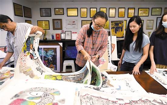 ■采写:新快报记者 王彤 ■摄影:新快报记者 孙毅 龚吉林 宁彪 多幅画作惊艳评委 根据年龄段,大赛划分了儿童、少年、青年三个组别。大赛组委会邀请广东省美术家协会专职副主席兼秘书长王永、广东省美术家协会副主席孙洪敏、广州画院原副院长孙戈、广州美术学院美术教育研究所首任所长陈卫和、广州市美术家协会副主席张思燕、广州市少年宫美术学校顾问郭伟新组成专家评审团。通过分组评选,初评出晋级、待定和淘汰三个类别,再经交叉评选的方式,进行二次筛选。 最终,在8000余幅作品中,近1000幅脱颖而出,获得优秀奖及一、二、三等奖。入围名单将于近期通过新快报专有艺术类公众号“新艺道”进行公布。 评选结束的时候,艺术家们将精心挑选的作品摊开,拍照留念。“你看这个8岁孩子的综合版画。从技巧上来说,他已经具备专业性了。从内容上来说,无论是题材、造型还是构思,都充满了童心。”带队评委王永对其中一幅获奖作品端详了许久。 评委孙洪敏则流连于儿童画《瑞雪兆丰年》。“每块砖头都不一样,画面下半部分紧密,上半部分收手留白,整体疏朗干净,了不起。” 少年组一等奖获奖名单中有一幅运用综合材料创作的作品。整个画面以蓝、金二色为主,广州塔、珠江入画。“题材与广州、与生活相关,这位少年并没有眼高手低,而是运用了可以把握的材料综合作画。垂直的线条干净利落,简约不简单。”评委孙戈赞叹。 值得注意的是,本次评选中并未有获奖油画作品。评委孙洪敏认为,投稿作品中流露出批量生产的匠气。评委王永则认为,油画对于青少年来说,门槛高,技术难度大,获奖数量少很正常。 书画大赛至今已连续举办五届 据悉,由广东新快报联合广东省美术家协会、广东省书法家协会共同主办的“翰墨青春 传承岭南”广东青少年书画大赛,至今已连续举办五届。作为岭南地区高规格的青少年艺术赛事,特邀广东省文学艺术界联合会主席李劲堃、中国艺术研究院博士生导师许钦松和广东省书法家协会主席张桂光担任大赛的艺术顾问。 2019年9月,大赛启动征稿以来,经过两个月时间,共收到来自广东全省以及山东、重庆、云南、广西、甘肃等多个省份和港澳台地区的1.5万余幅书画作品,参赛者年龄由3岁至35岁不等。 评委声音 广东省美术家协会专职副主席兼秘书长王永 书画大赛号召力越来越大 美术组的评选我几乎每年都参加。相比往届,本次参与的范围更广了。首届大赛的参选作品集中在广东省内,其中广州市最多。这次大赛则有不少来自广西等省份的投稿作品,而且就广东来说,全省各个地级市均有投稿,说明书画大赛的号召力和影响力越来越大,各个阶层对美术越来越重视。 作品质量则逐年提高。有些低龄作者的作品水平远超其年龄,逐渐接近成熟和专业化。比如青年组一等奖有一幅版画,作者组合呈现了48个夸张变形后的人像,每个人像各具特色,职业、性格鲜明。我们提倡作者突破传统,大胆利用并介入其他艺术形式,综合进行创作。 广东省美术家协会副主席孙洪敏 青少年技法的笨拙更加可贵 评选中,我会综合考察作品的思想性、时代性和艺术性。青少年作画提倡原创,不去临摹别人。今年的获奖作品中有两个是关于外卖小哥的,画作正是作者观察生活的结果,说明作者已经具备独立思考的能力。对于十几岁的孩子,不要求特别成熟的技法,相反,艺术手法上的笨拙更显可贵可爱。美育的目的不是生产画家,而是希望孩子能在画画的过程中独立思考,表达自我。老师在指导过程中如果让学生全部学习一种样式,就是美术教育的悲哀了。 广州画院原副院长孙戈 注重落款在画面上的平衡感 不要拿练习作品参赛 在绘画之路上,青少年要系统学习一定的技法,过程中难免会有所学名家的痕迹,这很正常。需要提醒选手的是,不要拿学习时的练习画去投稿参赛,比赛看中的是原创,只有在扎实基本功之上展示出自己对事物的真实感受,才会真正地感动评委。 另外,今年有一幅未能获奖的作品,我感到很可惜。其主体是一位姑娘,落款字体太大,接近主体,有失主次,因此与奖项无缘。在此,也要提醒青少年,注意练字,把字写好。如果字未能达到一定水准,起码能够控制其大小和范围。国画中印和款都属于构图的一部分,作者需要掂量把它们放至何处,以达到整体的平衡。 广州美术学院美术教育研究所首任所长陈卫和 要保护孩子的想象力和创造力 艺术教育和技能训练不一样。作品中有一幅画很机械刻板,风格像上世纪80年代的固定简笔画。这说明艺术机构中一些老师能够做到理解艺术并从事艺术教育,而一些老师可能仅仅是在做艺术训练。 其实,绘画是孩子的本能,是他们把自己心里想法外化的一种方式。在儿童阶段,老师最重要的责任是保护和引导孩子的想象力和创造力,而不是强行灌输成人的想法。当儿童能够用线条表达自己的感受时,本身就是伟大的进步。辅导老师在对儿童进行艺术教育时要避免过于专业化、技术化和功利化,为了得奖而作画。 广州市美术家协会副主席张思燕 美术教育的作用是 启迪思维,激发创造性 今年出现了两幅几乎一样的儿童画,说明这是同一位辅导老师在让学生模仿,因此落选。对于儿童画,老师和家长最重要的是培养和启发。其实,对于国家来说,需要的画家数量是有限的,而需要有创造力的人却