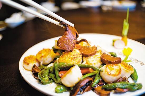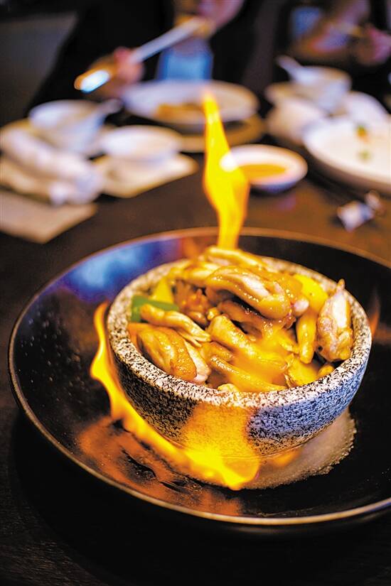 每年七八月,是一众食菌爱好者最狂欢的月份,松茸菌、干巴菌、牛肝菌、青头菌、鸡枞菌、鸡油菌、绣球菌等形态各异味道鲜美的菌子们,与各种肉食匹配成就道道美味。 广州保利洲际酒店中餐厅御公馆近期推出多种野生菌菜式,以煎炒烹炸焖炖煮的不同烹饪手法,将其烹制成菜。例如火焰鸡枞菌煎焗鸡,主角一为鸡枞菌,一为靓鸡,在行政总厨吴玉擎的手下,以猛火加高度白酒共同爆香二位,鸡枞菌的脆嫩口感被鸡肉香一加持,菌生瞬间得到升华。 牛肝菌形象厚实,如一枚枚小型鱼雷,口味也同样厚实。吴师傅选用同样壮硕厚实的白贝来与黄牛肝菌搭档,点睛之笔是让有“辣椒中的爱马仕”之称的樟树港辣椒横插一杠,牛肝菌的鲜与白贝的鲜共同衬托着樟树港辣椒的清香,清新脱俗如出水芙蓉。 这个季节也是东海大黄鱼上市的时间,新鲜松茸切片,与加了花雕酒的大黄鱼同蒸,就两个字——鲜美!