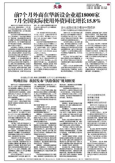 前7个月外商在华新设企业超18000家 7月全国实际使用外资同比增长15.8%